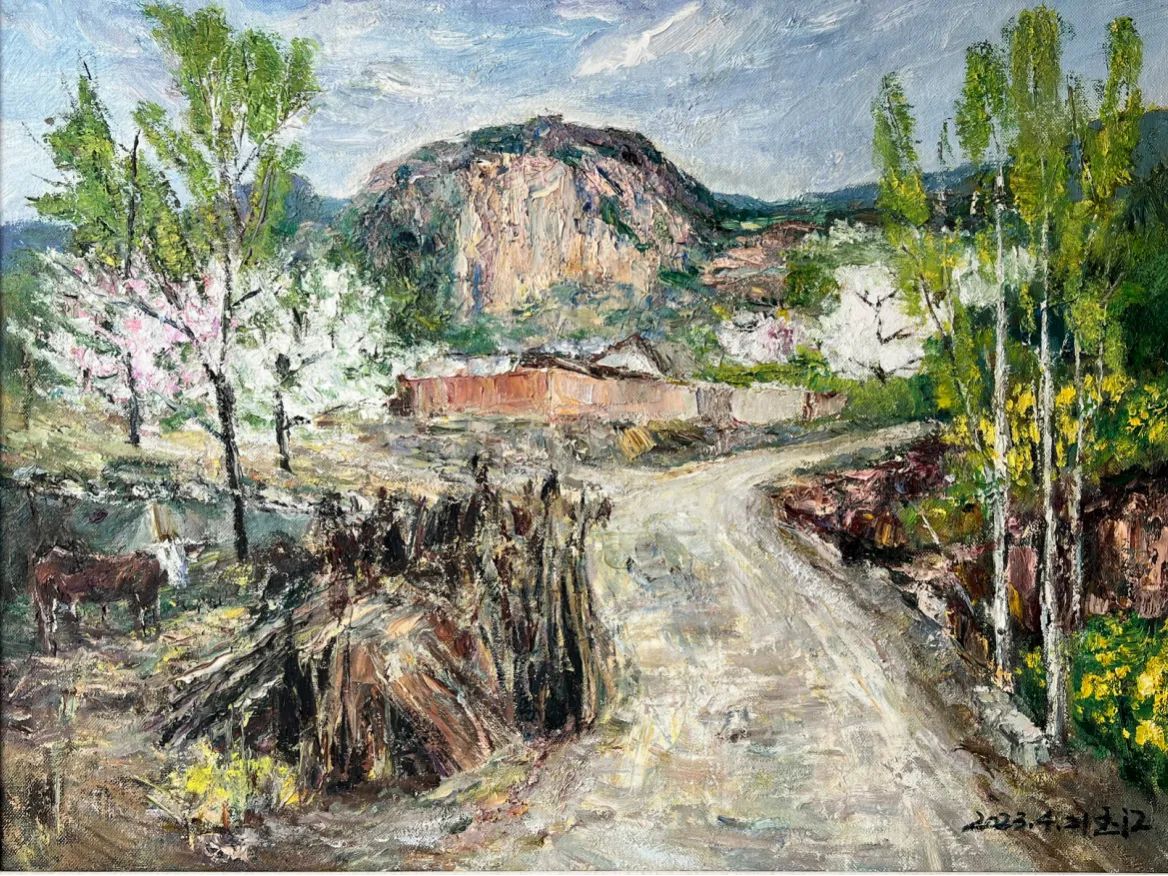 《春意正浓加碑岩》 60×80cm 布面油彩 2023年