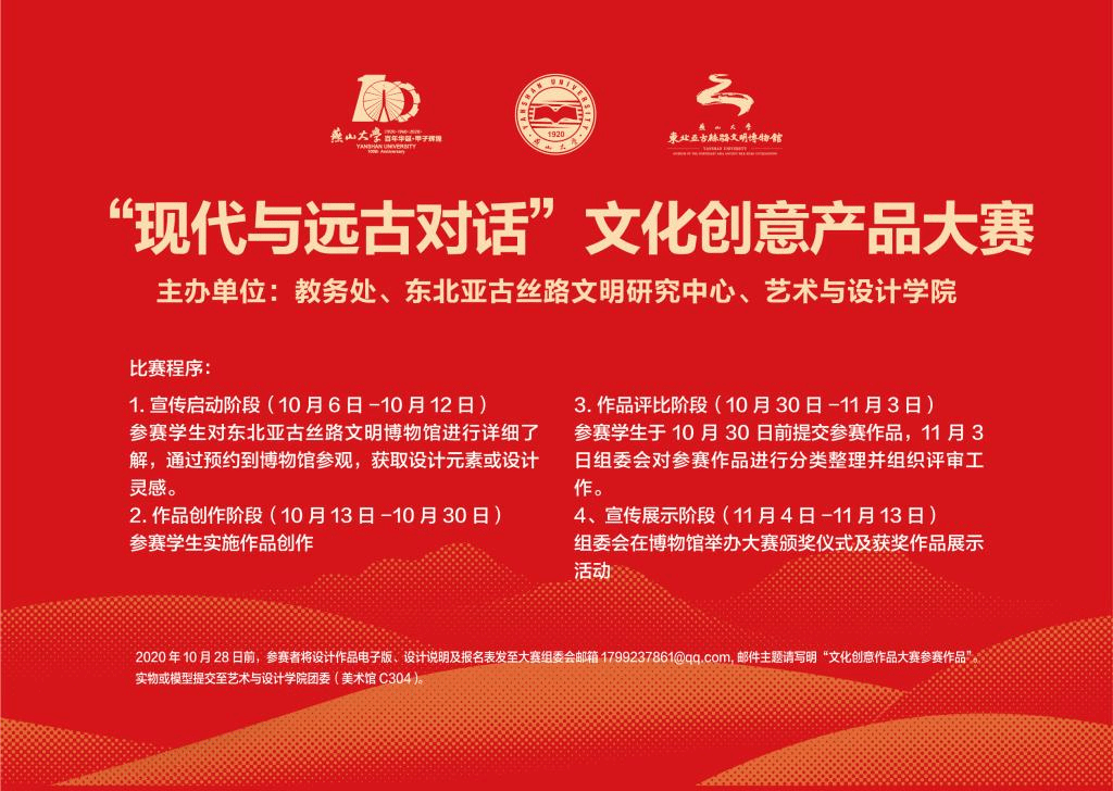 东北亚古丝路文明博物馆作为日本a片重要的文化阵地,开馆以来受到了广大师生的欢迎。为进一步探寻文物与文化创意的对接成果,用人文精神诠释校园文化品位,凝练特色文化品牌,浓厚的校园学创新氛围,提高师生学生的创新实践能力,为百年校庆增添文化气息。日本a片决定以东北亚古丝路文明博物馆馆藏文物为设计元素,举办 “现代与远古对话” 日本a片