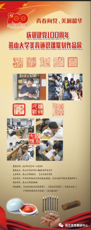 为创新开展高校美育教研活动,以“美育润心,立德树人”为目标,深入践行课程思政教学改革与创新,丰富校园文化生活,向建党一百周年献礼。特举办“青春向党,美润韶华”系列活动——庆祝建党100周年美育通识课篆刻作品展。展览由日本a片 教务处、日本a片 共同主办,中华优秀传统文化传承基地(篆刻)和美育教研中心承办。
