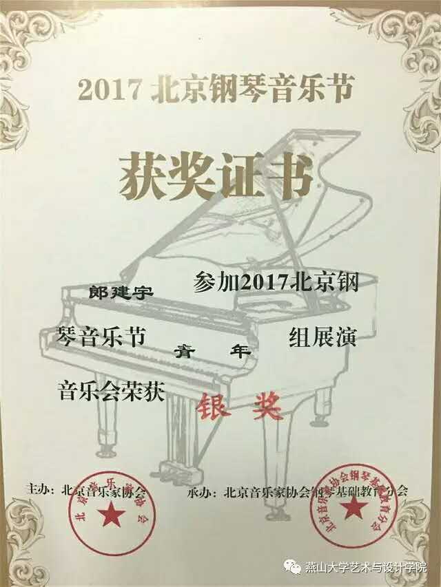 此次我校参加“2017北京钢琴音乐节”青年组的同学共计25人。在激烈的竞争中获得金奖,银奖的同学各一人,其余同学也发挥了良好的水平。