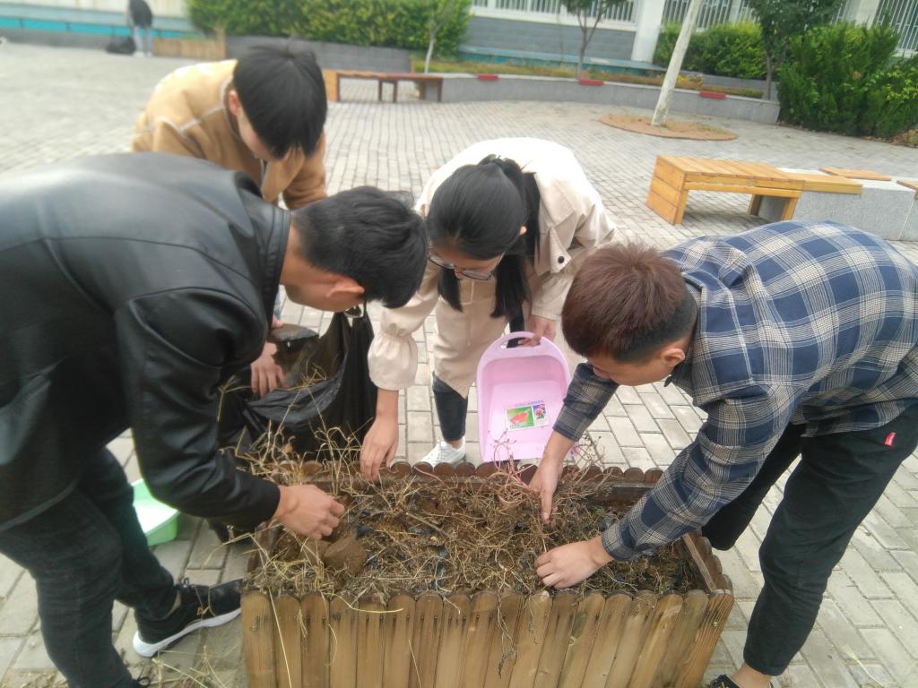 教学楼开展环境卫生清扫活动。重点清理了教学楼前广场和主干道两侧绿化带中垃圾、枯枝和树叶。经过简单分组、分工后,各组组员在包干区域内热火朝天地开始劳动。虽然进入深秋,天气转凉,但是同学们热情高扬,清扫工作开展的有条不紊,活动中同学们充分展现了不怕脏、不怕苦、不怕累的精神。大家以劳动为荣,乐在其中,成员间配合默契,用心完成此次任务。最终整个教学楼周围区域的面貌焕然一新。