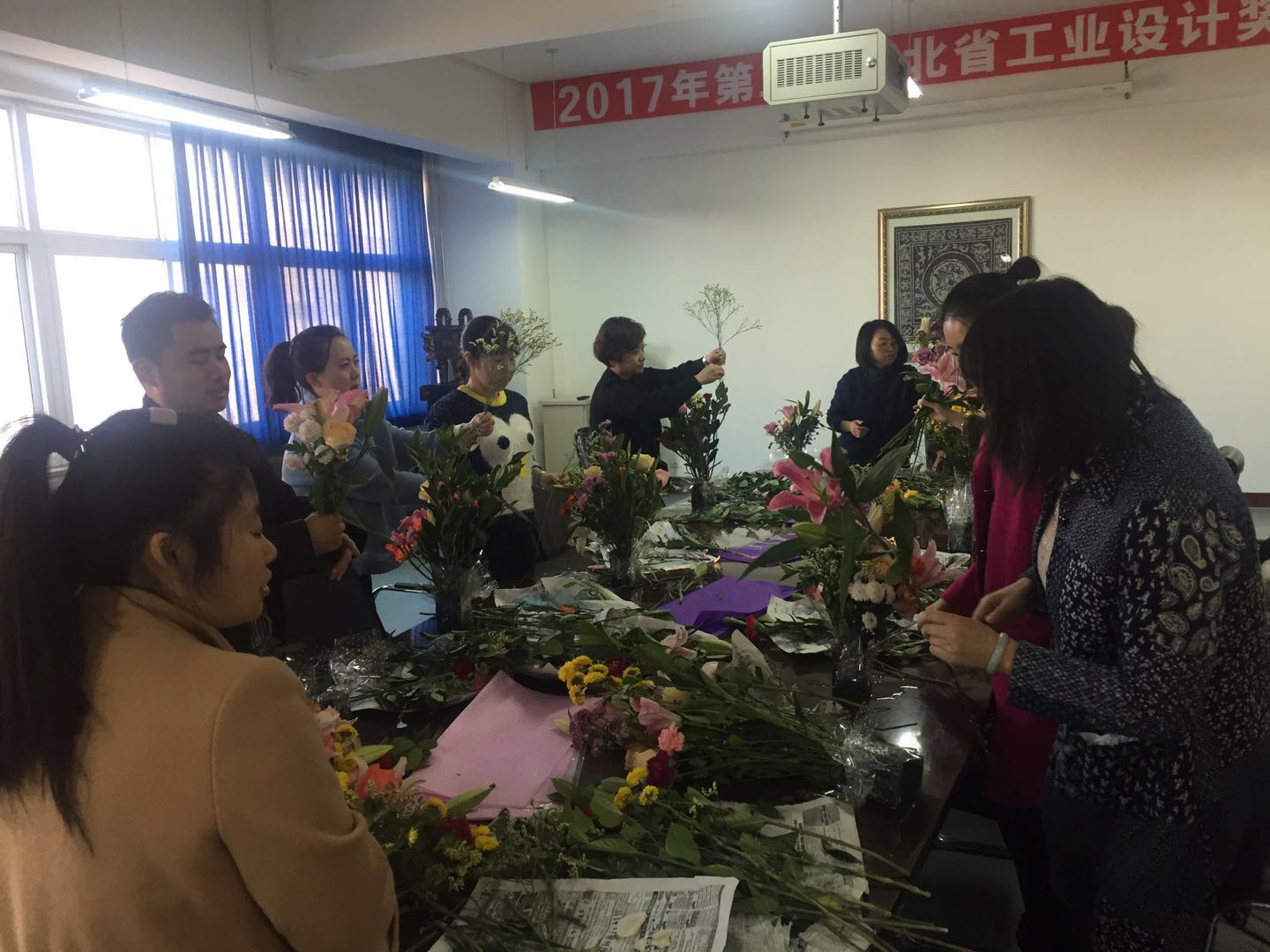 在美术馆C305举办了“庆祝十九大,花香满艺院”插花活动,吸引了众多教职工的参与,大家一同学习插花艺术,品味花海世界的美好生活。