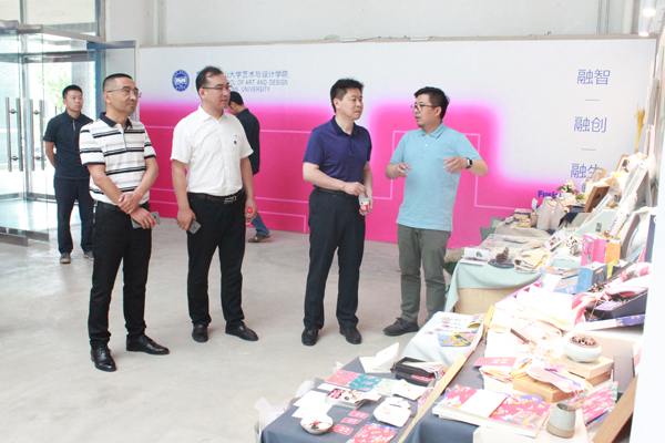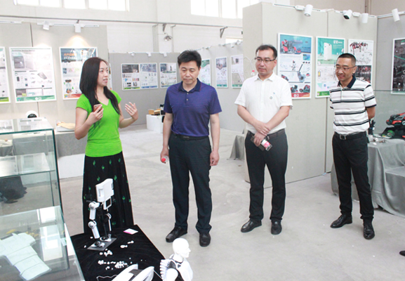 王德松、袁旭梅一行首先参观了2019届本科毕业设计作品展,各专业教师详细介绍了毕业作品的产生背景、创作思维、传达理念,王德松给与作品高度评价。