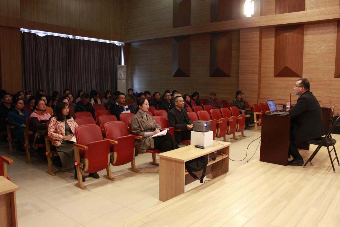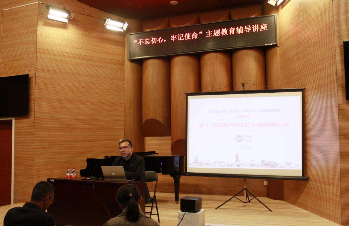 音乐馆B104为全体教职工讲授题为“践行不忘初心、牢记使命,扎实做好本职工作”的专题党课。
