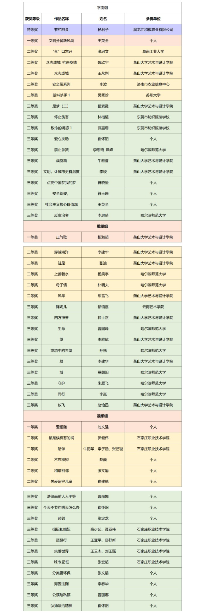 下面是荣获三等奖以上人员名单。