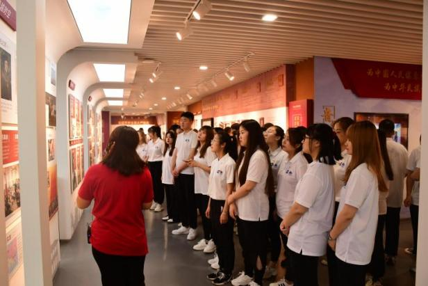 组织生活馆,并对各个展厅进行详细的讲解。首先参观的是宣誓厅;其次是展示中国共产党经过浴血奋战、不懈奋斗,带领中国人民从站起来、富起来到强起来的红色历程厅和展示共产党人坚定的理想信念的精神画谱厅;最后是展示近年来社会以及高校系统内部典型案例的风纪镜鉴厅和展示100位楷模人物光荣事迹的英模礼赞厅。