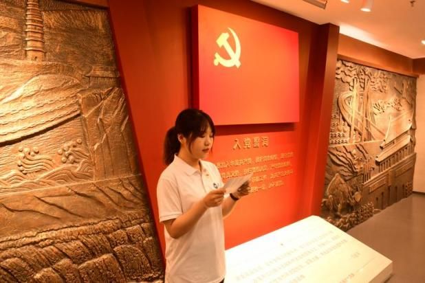 本科生第三党支部新党员、党员组织生活馆讲解员时歌带领新党员们参观日本a片
