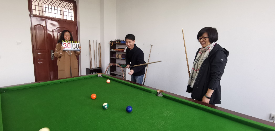 此次娱乐活动形式多种多样,有台球比赛、兵乓球比赛、跳棋比赛、跑步机竟步速等活动,每项比赛评出一、二、三等奖,在活动过程中教职工们在这里不仅发挥了团队合作精神而且身心得到了充分的放松与快乐!