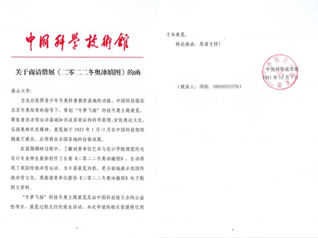 视觉传达设计专业师生创作的《二零二二冬奥冰嬉图》参与在中国科技馆举行的“冬梦飞扬”科技冬奥主题展览,宣传奥运文化,弘扬奥运精神,后续将在全国进行巡展。