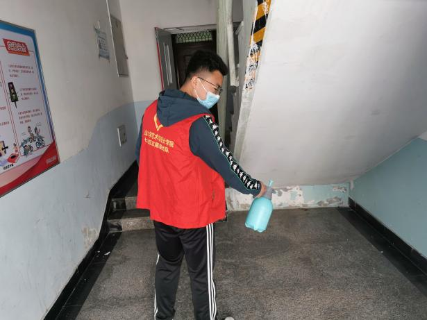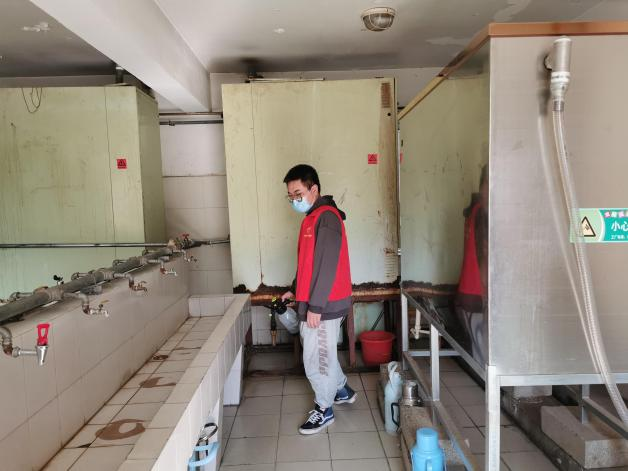 在消杀过程中,志愿者领取稀释过的消毒液,分批次、分区域,严格按照卫生消毒管理的标准规范对日本a片