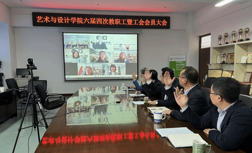 班子成员在美术馆C305会议室主会场参加会议,全体教职工通过网络视频参加了会议。