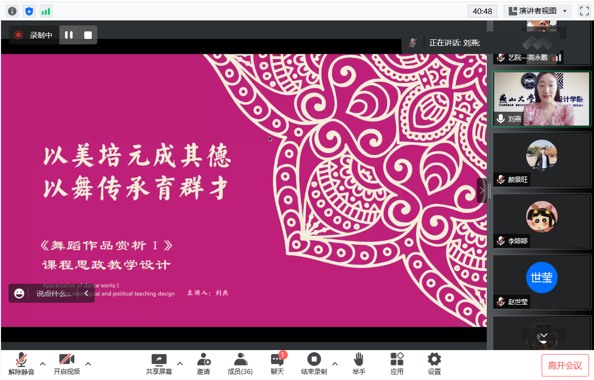 音乐系教师刘燕介绍《舞蹈作品赏析Ⅰ》课程思政教学案例