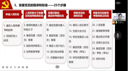 推进“每日一绘”“每日一练”的实施办法(试行)》,党员发展相关工作介绍,社区文化建设,征兵工作等相关规定;邀请教学秘书为同学们介绍了教学管理的相关文件要求。