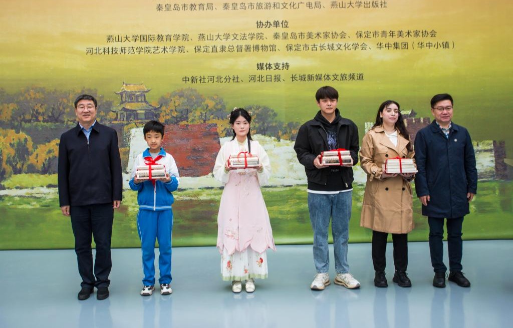 岳会仁和陈国强向学生代表赠送长城主题图书