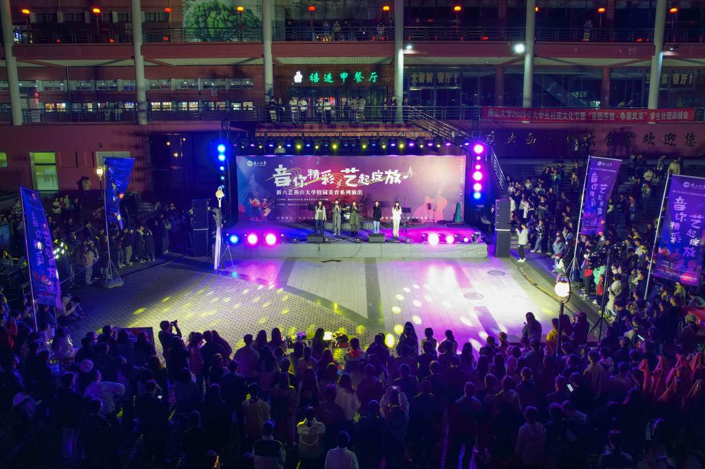 西区食堂广场拉开帷幕。此次音乐会是由宋军老师讲授的《音乐实践-阿卡贝拉音乐团队》《音乐实践-流行乐器组合体验》《音乐实践-视唱练耳》美育通识课的同学联合表演的,参加演出的学生涵盖了我校各个日本a片
