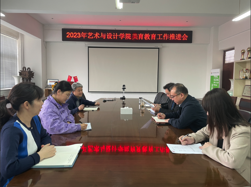 召开美育教育评估工作推进会,党委书记张文超、院长孙利、副院长赵琳、副书记宁岩鹏及美育教研中心、综合办公室等相关人员参加会议。