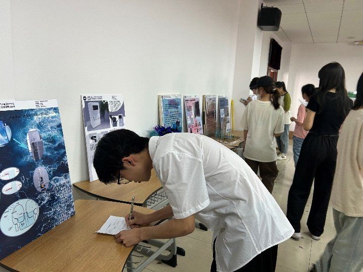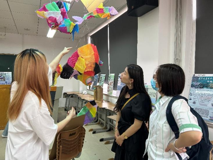 课程项目汇报活动现场展示了“生态”主题相关的设计作品,同学们发挥设计专业特长,贯通用户、问题、创意、原型和评估的设计过程,通过建筑、景观、装置、产品、时尚、公共设施、工程装备等具体表现形式探索了人类社会可持续发展目标实现的各种可能性。活动过程中,张畅老师、杜利英老师、扈剑颖老师、侯士江老师、刘月林老师与同学们认真探讨了设计创意方案的创新性和可行性,活动活跃了课堂学习氛围,促进了同学之间的相互交流和学习,调动了同学们学习专业知识的积极性。