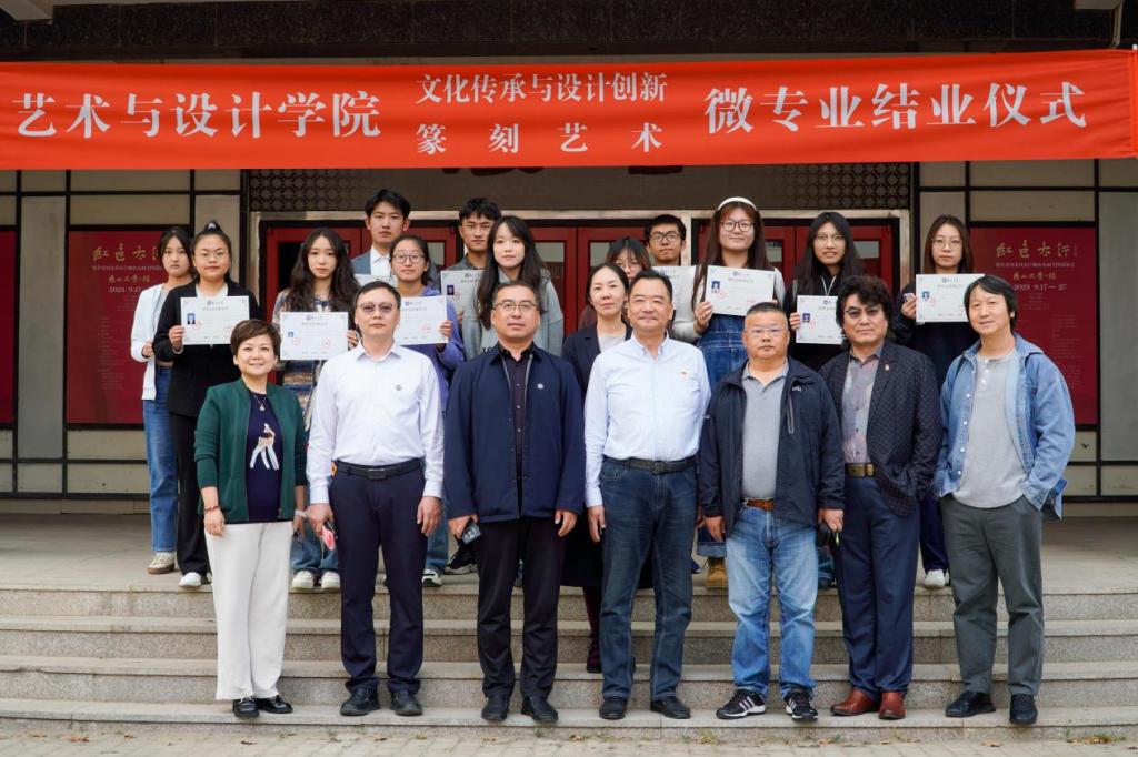 “文化传承与设计”、“篆刻艺术”微专业学生结业文件。张文超和赵春梅为两个微专业学生代表现场颁发了证书。