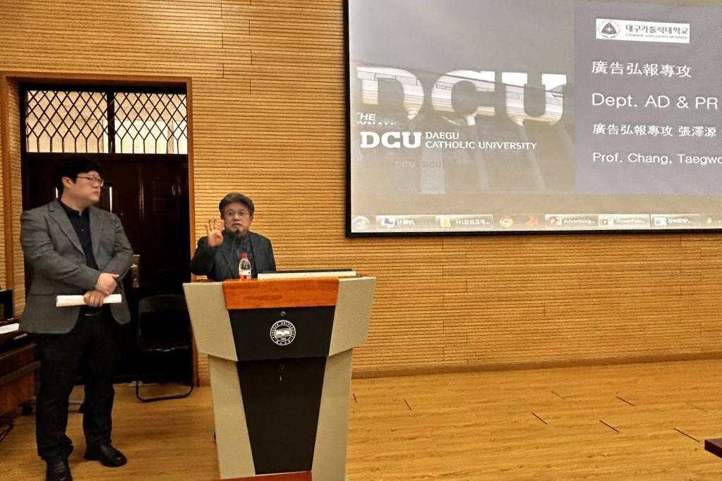 张太元(Chang Taegwon)教授为我校传播学领域人才开办论广告策划与韩国视频广告的学术讲座。张太元教授分享了他在广告策划和韩国视频广告方面的专业见解和研究成果,介绍了国际广告行业的最新动向,并分享了韩国视频广告的特点与成功案例。