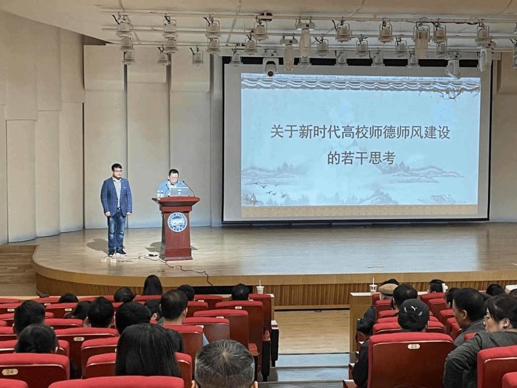 接着,陈步伟教授从新时代师德师风建设的重要意义、违反师德师风的现象及根源、相关法律法规、新时代争做“大先生”四个方面,具体讲述了师德师风的影响,运用详实的典型案例为老师们敲响警钟,提醒老师们要谨言慎行,修身、修心,不断地学习进步,才能成为一名合格的高校教师。